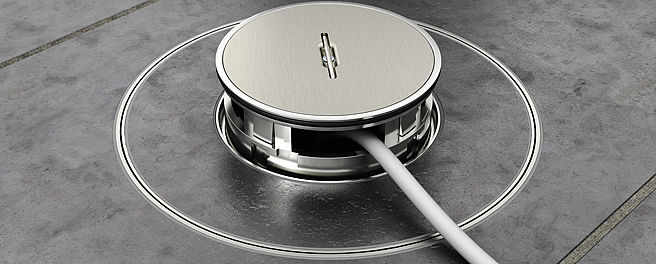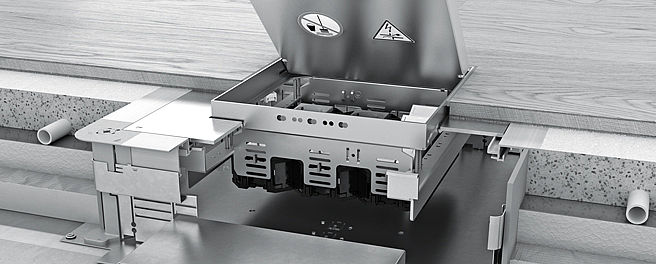 Los conjuntos portamecanismos con altura regulable desacoplados especiales para montaje en pavimento ya se pueden instalarse a partir de una altura de suelo de 90 mm, incluidos los mecanismos.