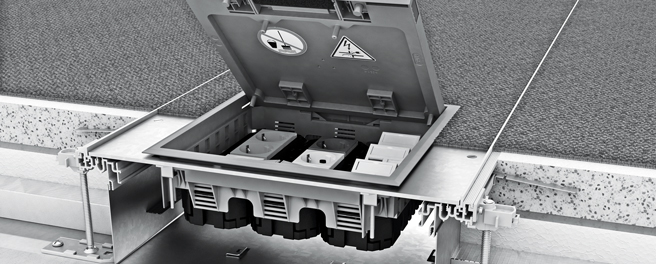 Los conjuntos portamecanismos con altura regulable desacoplados especiales para montaje en pavimento ya se pueden instalarse a partir de una altura de suelo de 90 mm, incluidos los mecanismos.
