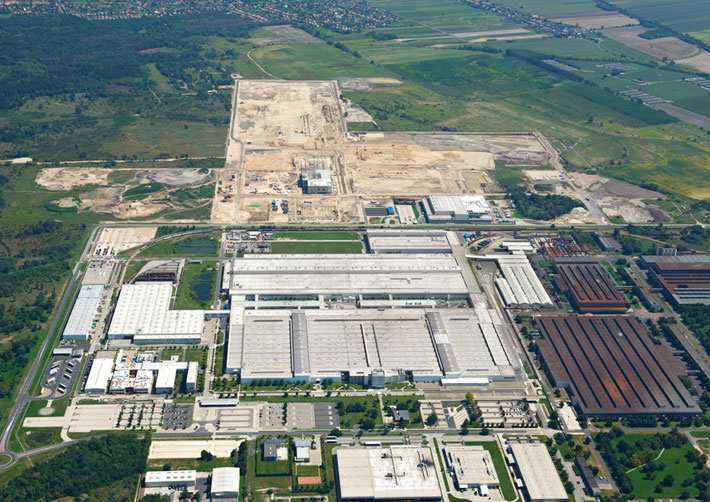 Audi reafirma su compromiso en Hungría de forma clara. Audi Hungría se fundó en 1993 y desde entonces el grupo produce aquí 20.000.000 motores, 535.000 vehículos y emplea a 6.500 trabajadores especializados. El 7 de julio de 2011 comenzaron los trabajos de ampliación de la superficie de la empresa a 2.000.000 metros cuadrados, donde se tiene previsto fabricar en un futuro 125.000 vehículos al año. 2.100 nuevos puestos de trabajo y cerca de 900 millones de euros de volumen de inversión, estas cifras dan una idea de la importancia de este gran proyecto. Con la ampliación de 340.000 metros cuadrados de la superficie de la nave, Audi Hungría dispone en total de 3.700.000 metros cuadrados de terreno de fábrica en Hungría y se ha convertido en toda una fábrica de automóviles.