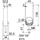 Accesorio de material Acero Accesorio de superficie Galvanizado en caliente Altura 118 mm Ancho 45 mm Ancho de ranura 10 mm Calidad de material de la bandeja Polipropileno Con bandeja de plástico sí Con contramediacaña no Dimensión 34-40mm Espesor de chapa 2 mm Huella de CO2 (GWP) Cradle-to-Gate 0,2309 kg CO2e / 1 Unidad Libre de halógenos sí Longitud 22,5 mm Longitud, dimensiones exteriores 34 mm Material Acero Material de la bandeja Plástico Máx. Par de apriete 3 Nm Medida A 22,5 mm Medida B 45 mm Medida C 34 mm Medida G (mm) M6 Medida H 118 mm Medida L 47 mm Medida t 2 mm Modo de montaje Perfiles en C Número de cables / tubos 2 Para carriles con ancho de ranura (con intervalo) máx. 17 mm Para carriles con ancho de ranura (con intervalo) mín. 16 mm Para diámetro de tubo máx. 40 mm Para diámetro de tubo mín. 34 mm Rango de sujeción D máx. 40 mm Rango de sujeción D mín. 34 mm Rosca M6 Superficie Galvanizado por inmersión en caliente - Todos los tipos