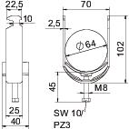 Accesorio de material Acero Accesorio de superficie Galvanizado en caliente Altura 102 mm Ancho 70 mm Ancho de ranura 10 mm Calidad de material de la bandeja Polipropileno Con bandeja de plástico sí Con contramediacaña no Dimensión 58-64mm Espesor de chapa 2,5 mm Huella de CO2 (GWP) Cradle-to-Gate 0,3103 kg CO2e / 1 Unidad Libre de halógenos sí Longitud 25 mm Longitud, dimensiones exteriores 40 mm Material Acero Material de la bandeja Plástico Máx. Par de apriete 5 Nm Medida A 25 mm Medida B 70 mm Medida C 40 mm Medida G (mm) M8 Medida H 102 mm Medida L 45 mm Medida t 2,5 mm Modo de montaje Perfiles en C Número de cables / tubos 1 Para carriles con ancho de ranura (con intervalo) máx. 17 mm Para carriles con ancho de ranura (con intervalo) mín. 16 mm Para diámetro de tubo máx. 64 mm Para diámetro de tubo mín. 58 mm Rango de sujeción D máx. 64 mm Rango de sujeción D mín. 58 mm Rosca M8 Superficie Galvanizado por inmersión en caliente - Todos los tipos