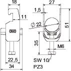 Descripción de productoAbrazadera sobre perfil con base U, mediacaña de plástico de polipropileno. Para el montaje vertical y horizontal de 1 cable individual en perfil tipo C. Para ancho de ranura de 18 - 22 mm. Con tornillo de 1 paso en la mediacaña, cabeza de tornillo hexagonal universal SW10, con ranura y ranura en cruz. Adecuado para montaje en zonas interiores y exteriores. Se recomienda el uso de una contra-caña.