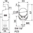 Descripción de productoAbrazadera sobre perfil con base U, mediacaña de plástico de polipropileno. Para el montaje vertical y horizontal de 1 cable individual en perfil tipo C. Para ancho de ranura de 18 - 22 mm. Con tornillo de 1 paso en la mediacaña, cabeza de tornillo hexagonal universal SW10, con ranura y ranura en cruz. Adecuado para montaje en zonas interiores y exteriores. Se recomienda el uso de una contra-caña.