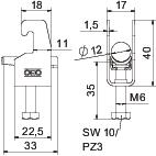 Descripción de productoAbrazadera sobre perfil con base U, mediacaña de plástico de polipropileno. Para el montaje vertical y horizontal de 1 cable individual en perfil tipo C. Para ancho de ranura de 18 - 22 mm. Con tornillo de 1 paso en la mediacaña, cabeza de tornillo hexagonal universal SW10, con ranura y ranura en cruz. Adecuado para montaje en zonas interiores y exteriores. Se recomienda el uso de una contra-caña.
