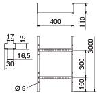 Descripción de productoBandeja de escalera con barra lateral perforada de ala 110 mm con peldaños de perfil en C abiertos hacia arriba, remachados.