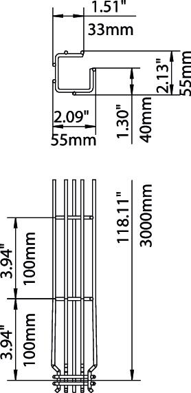 Acero inoxidable, barnizado sí Altura 50 mm Altura 1,97 in Ancho 50 mm Ancho 1,97 in Color acero inoxidable Conector sin tornillos sí Diámetro alambre 3,9 mm Dimensión 50x50x3000 Forma de perfil Forma G Huella de CO2 (GWP) Cradle-to-Gate 3,4137 kg CO2e / 1 Metro Longitud 3000 mm Mantenimiento de función no Material Acero inoxidable 1.4301 Medida A 38 mm Medida B 55 mm Medida C 33 mm Medida H 55 mm Modelo de unión conector integrado Sección efectiva 1700 mm² Sección efectiva 17 cm² Superficie Pulido, con tratamiento posterior Tabique separador integrado Sin Tipo de test de carga según IEC 61537 Tipo II Tipo del conector del sistema portacables Fijación a presión Tipo vano ancho no - Todos los tipos