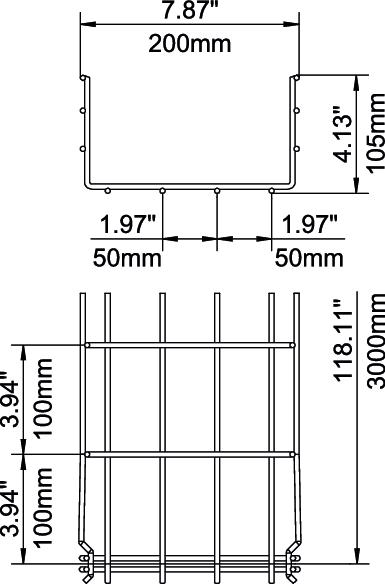 Para la bandeja de rejilla no se necesitan componentes adicionales, simplemente se engancha la una con la otra. El ancho de malla es de 50 x 100 mm.