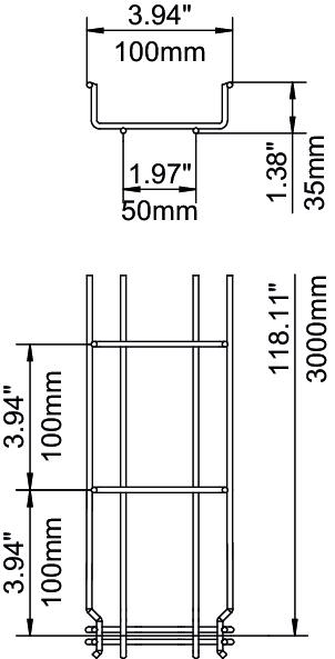 Para la bandeja de rejilla no se necesita ningún tipo de unión, simplemente se engancha un tramo con otro. Die Maschenweite beträgt 50 x 100 mm (Ausnahme GRM 35/50 = 20 x 100 mm).