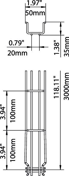 Para la bandeja de rejilla no se necesita ningún tipo de unión, simplemente se engancha un tramo con otro. Die Maschenweite beträgt 50 x 100 mm (Ausnahme GRM 35/50 = 20 x 100 mm).