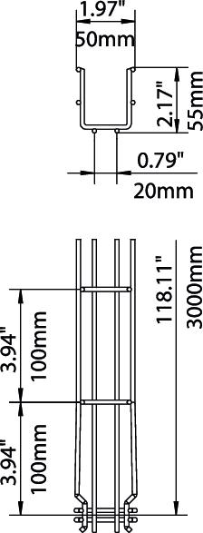 Acero inoxidable, barnizado no Altura 55 mm Altura 2,17 in Ancho 50 mm Ancho 1,97 in Color zinc Conector sin tornillos sí Diámetro alambre 3,9 mm Dimensión 55x50x3000 Distancia de sujeción 1,0 m 0,35 kN/m Distancia de sujeción 1,5 m 0,2 kN/m Distancia de sujeción 2,0 m 0,1 kN/m Distancia de sujeción 2,5 m 0,1 kN/m Forma de perfil Perfil U Huella de CO2 (GWP) Cradle-to-Gate 1,4752 kg CO2e / 1 Metro Longitud 3000 mm Mantenimiento de función sí Material Acero Medida B 52 mm Medida H 58 mm Modelo de unión conector integrado Protección contra incendios Mantenimiento de función construcción portante específica según el cable Sección efectiva 1600 mm² Sección efectiva 16 cm² Superficie Galvanizado por inmersión en caliente Tabique separador integrado Sin Tipo de test de carga según IEC 61537 Tipo II Tipo del conector del sistema portacables Fijación a presión Tipo vano ancho no Datos técnicos