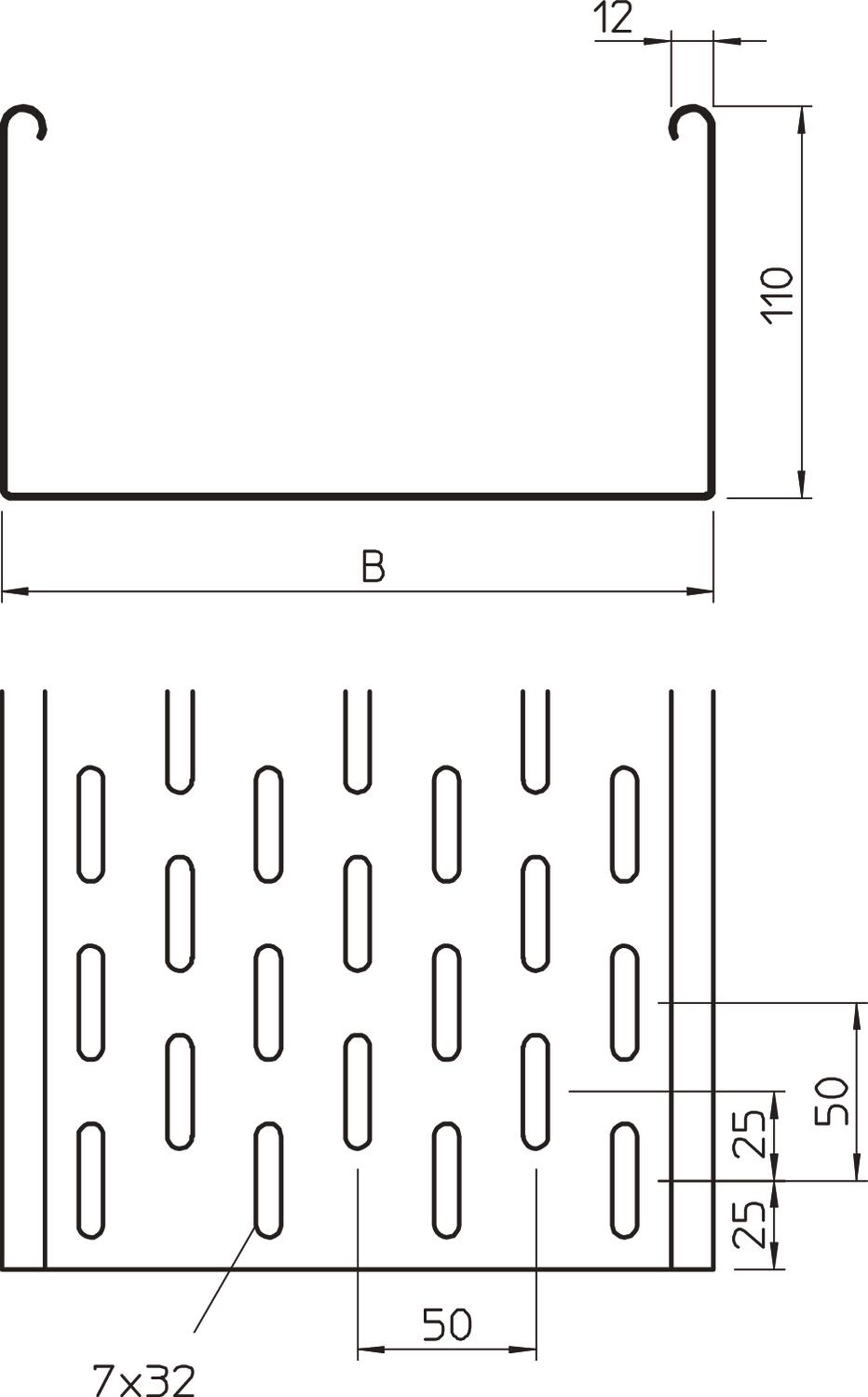 Descripción de productoSKS 110 = sistema de bandeja portacables de ala 110 mm.