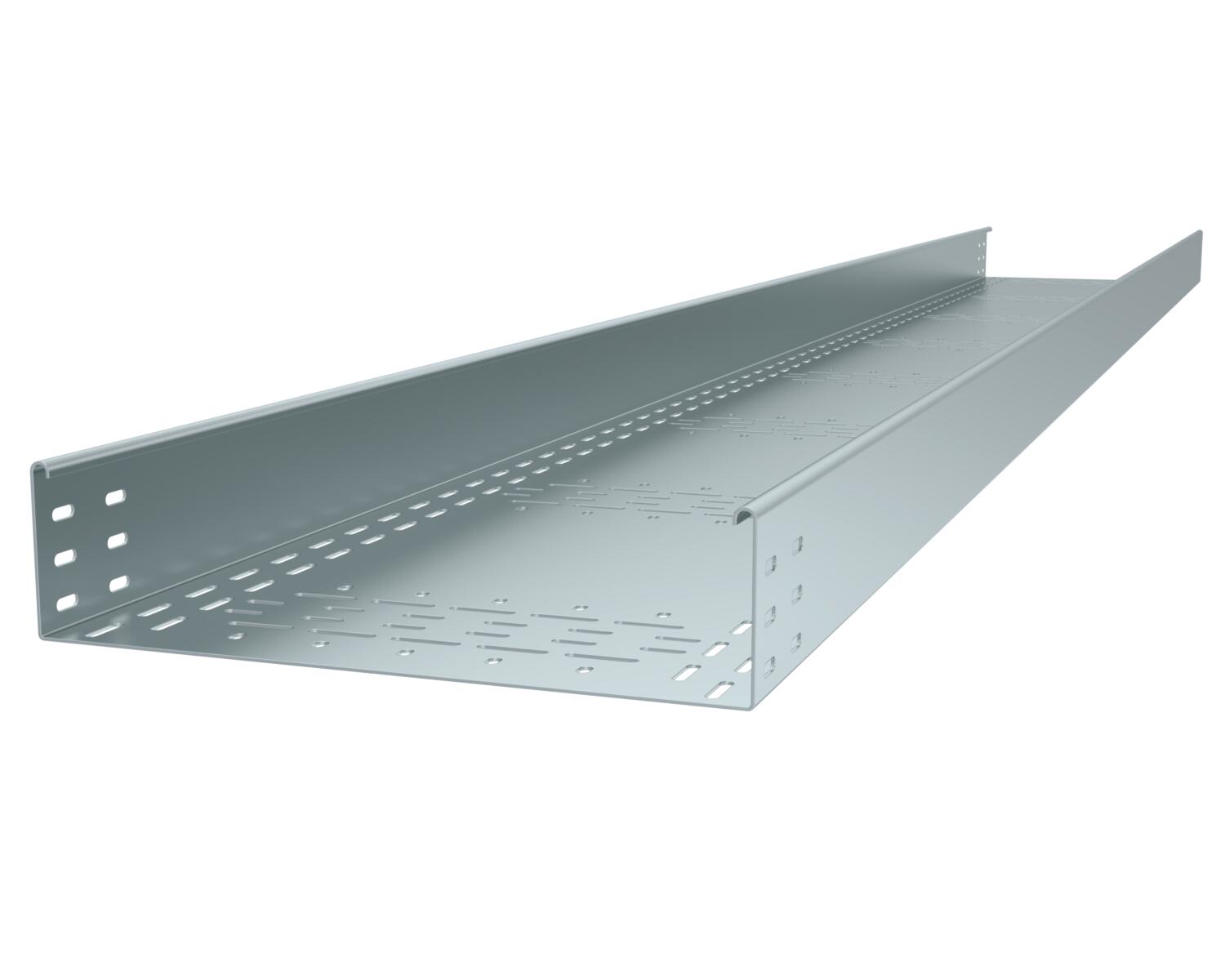 Descripción de productoSistema de bandeja portacables pesado y transitable BKRS con orificio pasante de ala 100 mm.