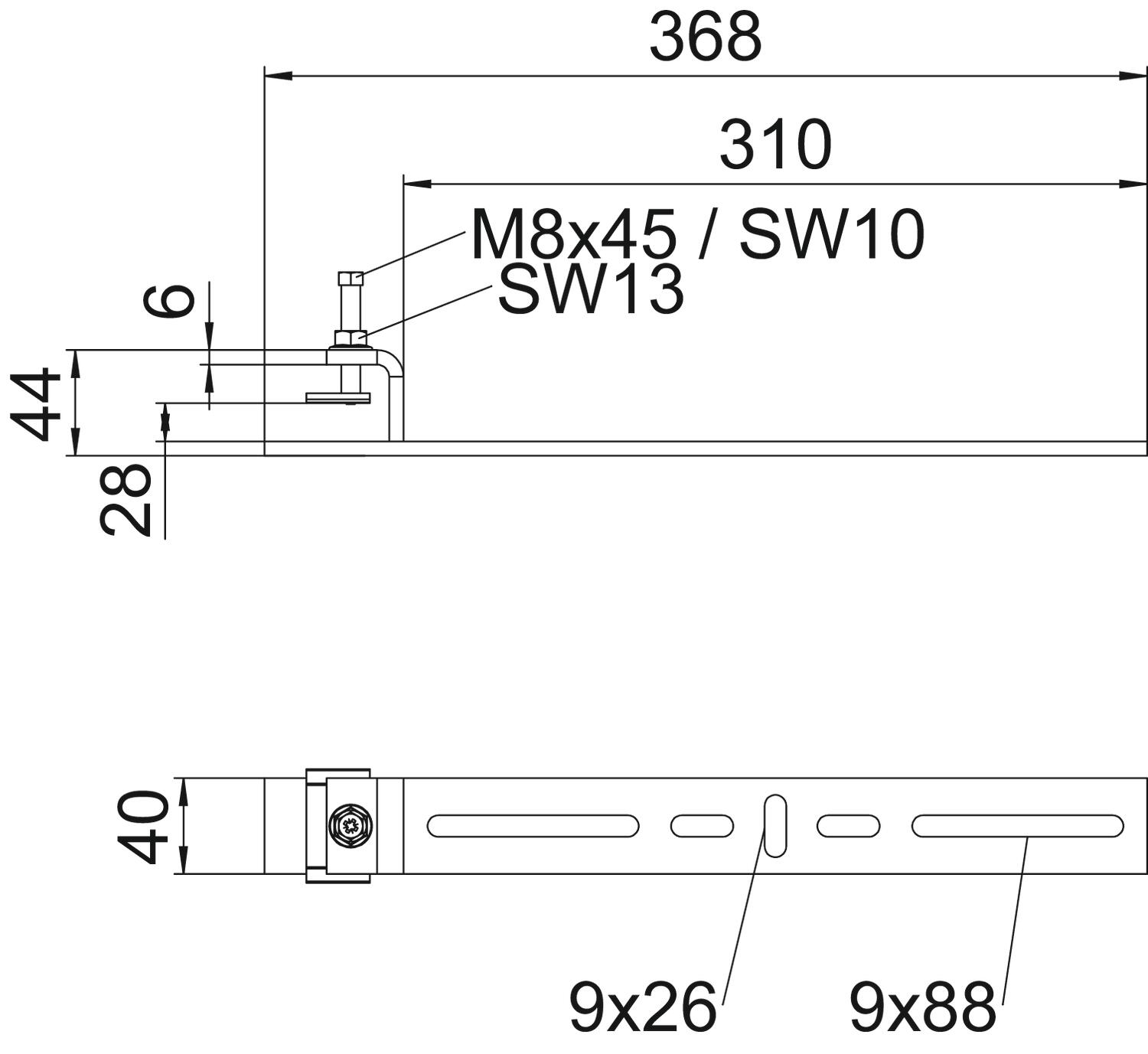 Acero inoxidable, barnizado no Altura 32 mm Ancho 310 mm Color zinc Dimensión 368x44x40 Grosor del material 6 mm Longitud 368 mm Material Acero Rango de temperatura -20 °C Rango de temperatura máx. 120 °C Superficie Galvanizado por inmersión en caliente - Todos los tipos