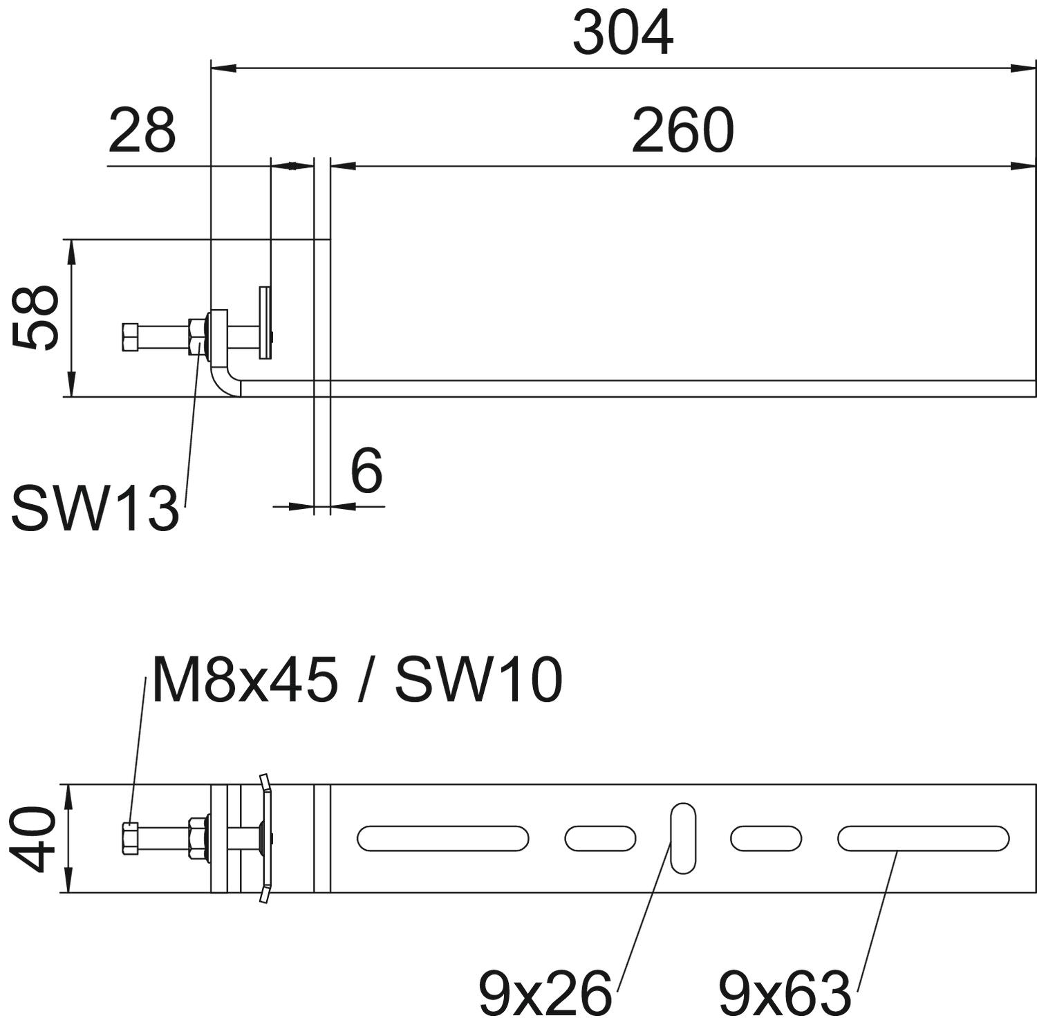 Acero inoxidable, barnizado no Altura 58 mm Ancho 260 mm Color zinc Dimensión 304x58x40 Grosor del material 6 mm Longitud 298 mm Material Acero Rango de temperatura -20 °C Rango de temperatura máx. 120 °C Superficie Galvanizado por inmersión en caliente - Todos los tipos
