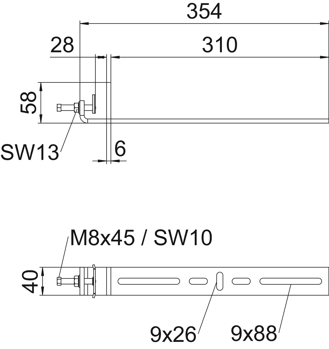 Beam clamp for mounting light components on vertical steel beams. Suitable, for example, for mesh cable trays and cable trays to 300 mm width or clips. The direction of the cable support system attached to the beam clamp is vertical.