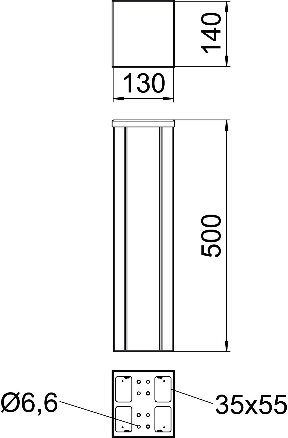 Ajustable no Altura 140 mm Altura de la columna mín. 500 mm Ancho 130 mm Ancho de la parte superior 76,5 mm Color aluminio Dimensión 500x130x140 Entrada de cables abajo Huella de CO2 (GWP) Cradle-to-Gate 38,6183 kg CO2e / 1 Unidad Libre de halógenos sí Longitud 500 mm Material Aluminio Modelo de columna Rectangular Montaje en el suelo sí Montaje en techo no Móvil no Número de conductos 2 St. Número de cubiertas instalables 2 Perfil pasante sí Precableado no Superficie Anodizado Tipo de fijación Atornillar Versión Bilateral - Todos los tipos