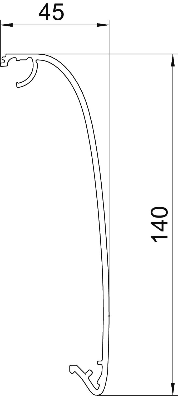 Altura 45 mm Ancho 140 mm Color aluminio Dimensión 45x140x999 Hoja protectora sí Huella de CO2 (GWP) Cradle-to-Gate 16,6574 kg CO2e / 1 Unidad Libre de halógenos sí Longitud 999 mm Material Aluminio Superficie Anodizado Tipo de montaje de las tapas general Tratamiento antibacteriano no Versión Liso - Todos los tipos