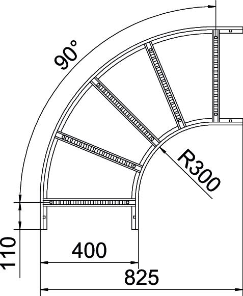 Descripción de productoCurva 90, horizontal con peldaño soldado para todas las bandejas de escalera de ala 110 mm.
