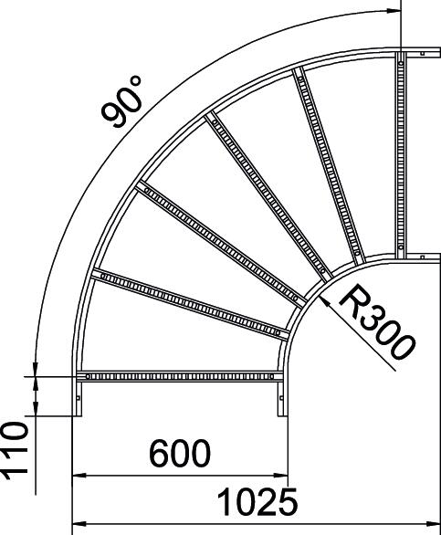 Descripción de productoCurva 90, horizontal con peldaño soldado para todas las bandejas de escalera de ala 110 mm.