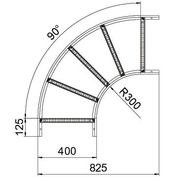 Descripción de productoCurva 90º, horizontal, con peldaño soldado para todas las bandejas de escalera de ala 60 mm.