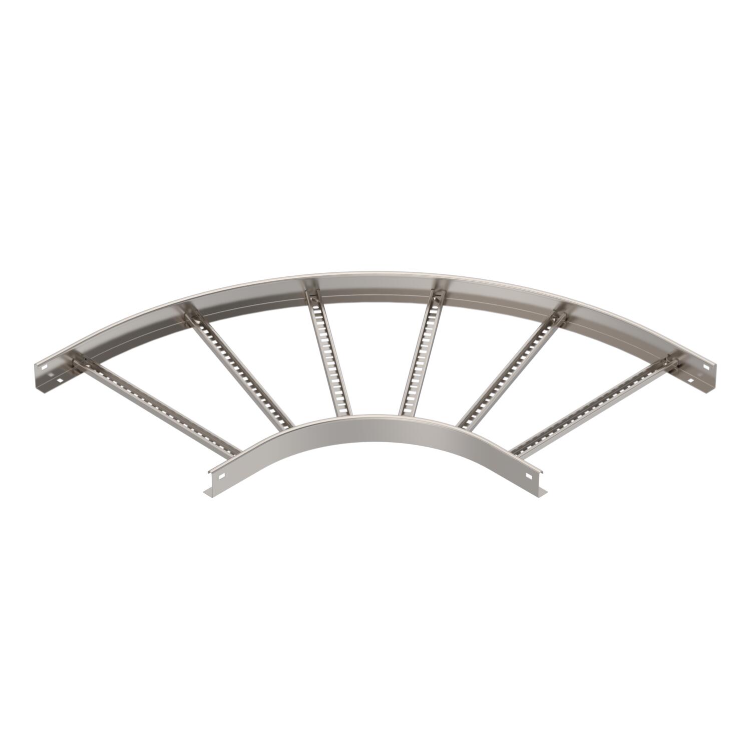 Descripción de productoCurva 90º, horizontal, con peldaño soldado para todas las bandejas de escalera de ala 60 mm.
