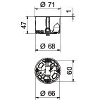 A prueba de impactos no Altura 47 mm Antiinflamable la norma VDE 0471/DIN 695 parte 2-11, temperatura de ensayo 850°C Apropiado para grosor de placa máx. 40 mm Apropiado para grosor de placa mín. 5 mm Clase de protección IP30 Color Naranja / gris Con tornillos sí Diámetro 68 mm Diámetro orificio de fresado 68 mm Dimensión Ø68mm, H47mm Ejecución redondo Empalmes Conector de unión Entradas combinadas Ø 20 / 25 mm 2 Entradas de cable 3 x 1,5 mm² 2 Entradas de cable 3 x 2,5 mm² / 5 x 1,5 mm² 2 Fijación de los aparatos Tornillos Fijación de tapa Tornillos Hermética sí Huella de CO2 (GWP) Cradle-to-Gate 0,0772 kg CO2e / 1 Unidad Libre de halógenos sí Material Polipropileno / Elastómero termoplástico Número de compartimentos 1 Número de entradas 6 Para diámetro de tubo 20/25 mm Sección nominal máx. 2,5 mm² Sección nominal mín. 1,5 mm² Sound insulation tested up to 70 dB according to ISO 10140-2 Tapa Sin Tensión de funcionamiento 400 V Tipo de entrada Orificio practicable para conductores NYM, líneas de datos y tubos corrugados Tipo de entrada a la carcasa Membrana de entrada - Todos los tipos
