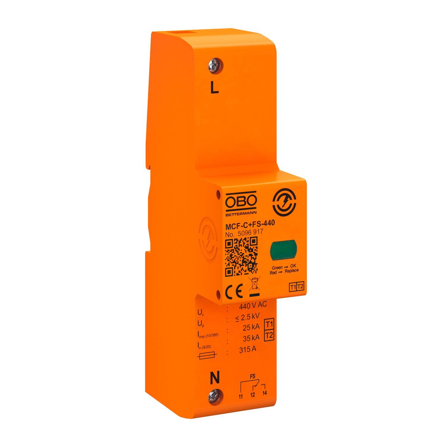 • Supresor de corrientes repetitivas de red 25 kA Ipico, fusible previo de descargador hasta 500 A gL/gG