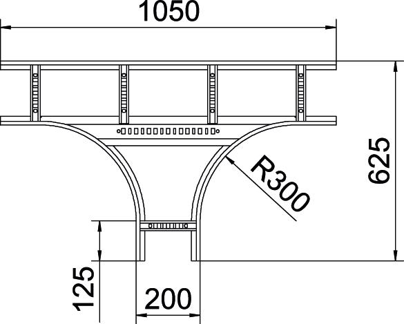 Descripción de productoDerivación en T, horizontal, con peldaño soldado para todas las bandejas de escalera de ala 110 mm.