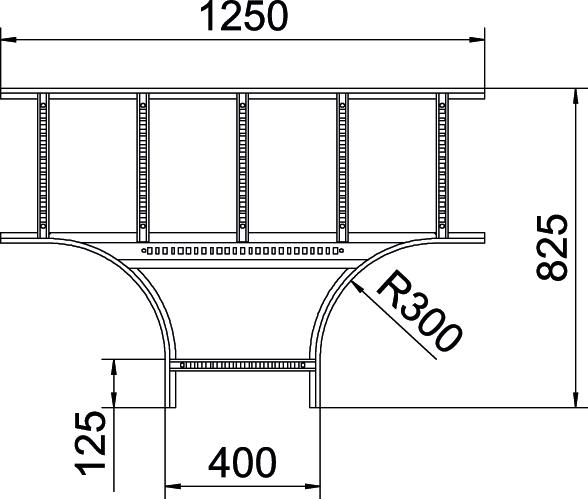 Descripción de productoDerivación en T, horizontal, con peldaño soldado para todas las bandejas de escalera de ala 110 mm.