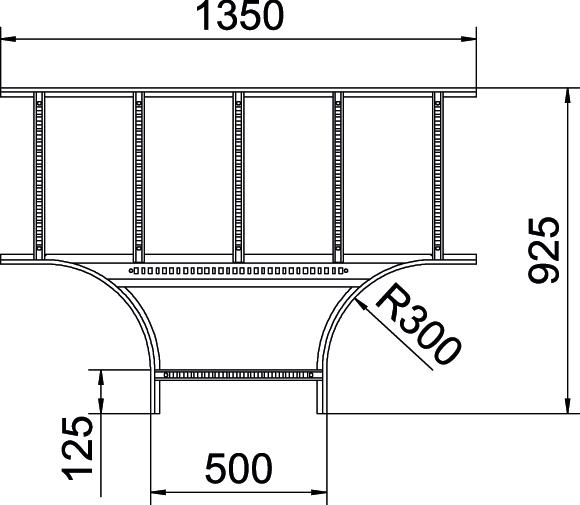 Descripción de productoDerivación en T, horizontal, con peldaño soldado para todas las bandejas de escalera de ala 110 mm.