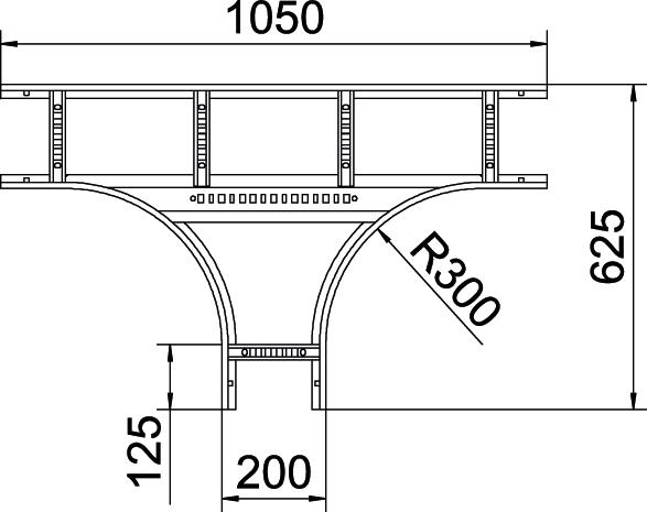Descripción de productoDerivación en T, horizontal, con peldaño soldado para todas las bandejas de escalera de ala 60 mm.