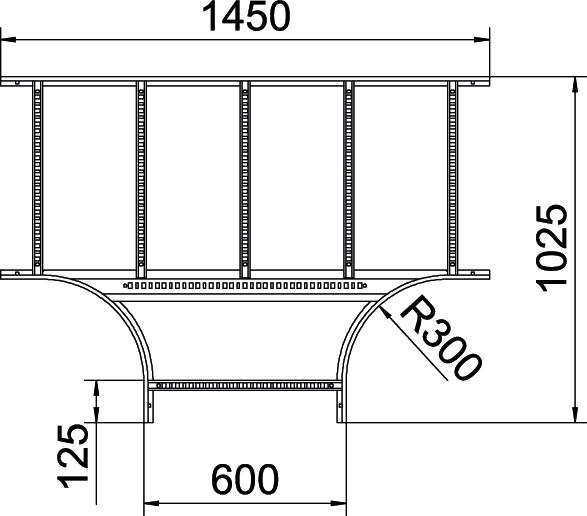 Descripción de productoDerivación en T, horizontal, con peldaño soldado para todas las bandejas de escalera de ala 60 mm.