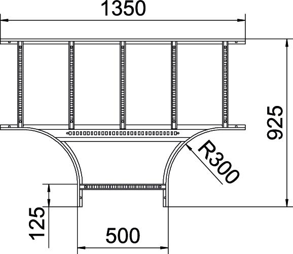 Descripción de productoDerivación en T, horizontal, con peldaño soldado para todas las bandejas de escalera de ala 60 mm.