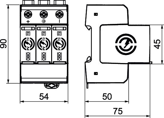 Altura 95 mm Ancho 54 mm Apropiado para uso externo no Categoría de pruebas tipo 2 sí Clase de protección IP20 Clasificación según la norma EN 61643-11 Tipo 2 Contactos FM Contacto inversor Dimensión 1100V DC Estructura de red CC Estructura de red CC sí Estructura de red IT no Estructura de red otros no Estructura de red TN no Estructura de red TN-C no Estructura de red TN-C-S no Estructura de red TN-S no Estructura de red TT no Fusible previo integrado no Humedad máx. 95 % Humedad mín. 5 % Intensidad nominal de descarga (8/20 µs) 20 kA Longitud 75 mm LPZ 0→2 Máx. Tensión fotovoltaica 1100 V Máxima corriente de descarga (8/20 μs) 40 kA Máxima tensión de funcionamiento CC 1100 V Modelo de polos 3 Modo de montaje Raíl simétrico 35 mm Número de polos 3 Par de giro 4,5 Nm Potencia de conexión CA 250 V; 1,0 A / 125 V; 1,0 A Potencia de conexión CC 48 V; 0,5 A / 24 V; 0,5 A / 12 V; 0,5 A Rango de temperatura -40 °C Rango de temperatura máx. 85 °C Sección transversal de conductor flexible (de hilo fino) máx. 4 AWG Sección transversal de conductor flexible (de hilo fino) máx. 35 mm² Sección transversal de conductor flexible (de hilo fino) míin. 16 AWG Sección transversal de conductor flexible (de hilo fino) míin. 2,5 mm² Sección transversal de conductor rígido (unifilar/multifilar) máx. 35 mm² Sección transversal de conductor rígido (unifilar/multifilar) máx. 2 AWG Sección transversal de conductor rígido (unifilar/multifilar) mín. 16 AWG Sección transversal de conductor rígido (unifilar/multifilar) mín. 2,5 mm² Señalización en el dispositivo Visual SPD según IEC 61643-1 clase II Tiempo de reacción <25 ns Versión 3-pole for PV systems - Todos los tipos