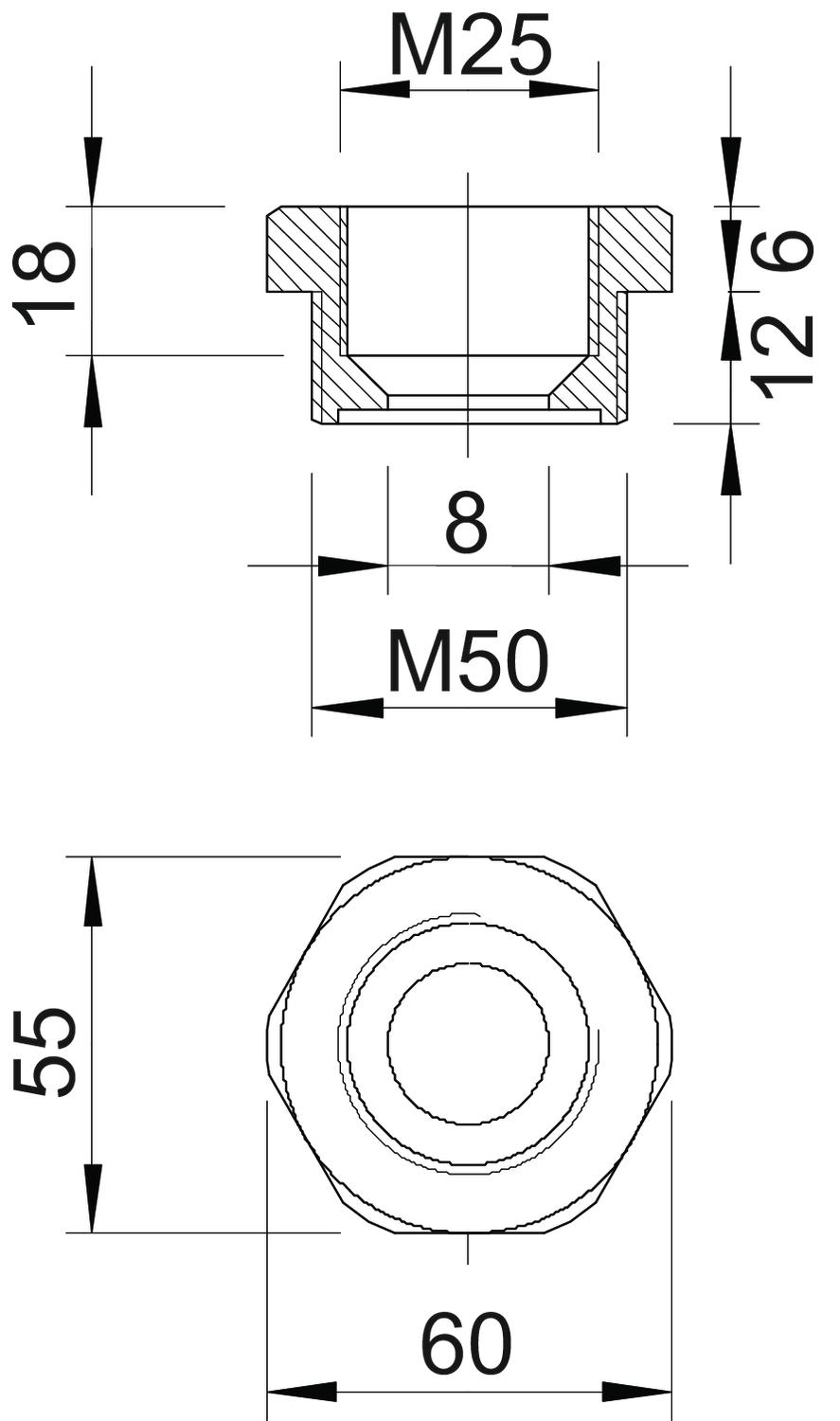 Descripción de productoReducción con rosca métrica interior y exterior para el montaje de prensaestopas de plástico en cajas. Clase de protección IP54 sin junta de conexión adicional. Clase de protección hasta IP68 posible con junta de conexión adicional, por ejemplo, junta tórica o junta plana de estanqueidad.