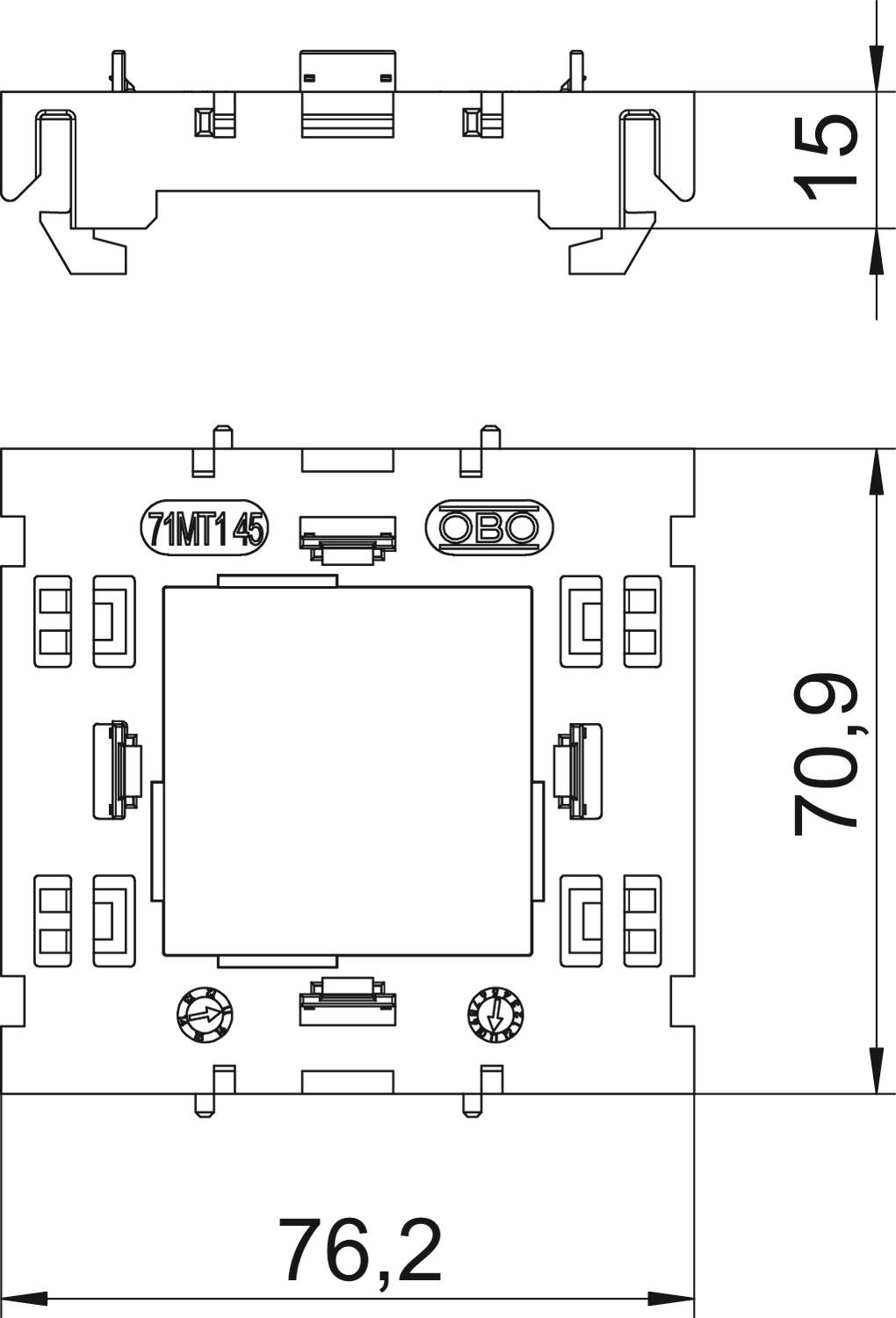 Altura 15 mm Ancho 76 mm Carril de fijación Otros Color Gris claro, RAL 7035 Con cámara de conexión no Dimensión 15x76x71 Huella de CO2 (GWP) Cradle-to-Gate 0,1071 kg CO2e / 1 Unidad Libre de halógenos sí Longitud 71 mm Material Poliamida Modo de montaje de la caja Parte delantera Modo de montaje del mecanismo Encajar Número de unidades 1 Posibilidad de descarga de tracción no Tipo de aparato Módulo 45 Versión Abierto - Todos los tipos