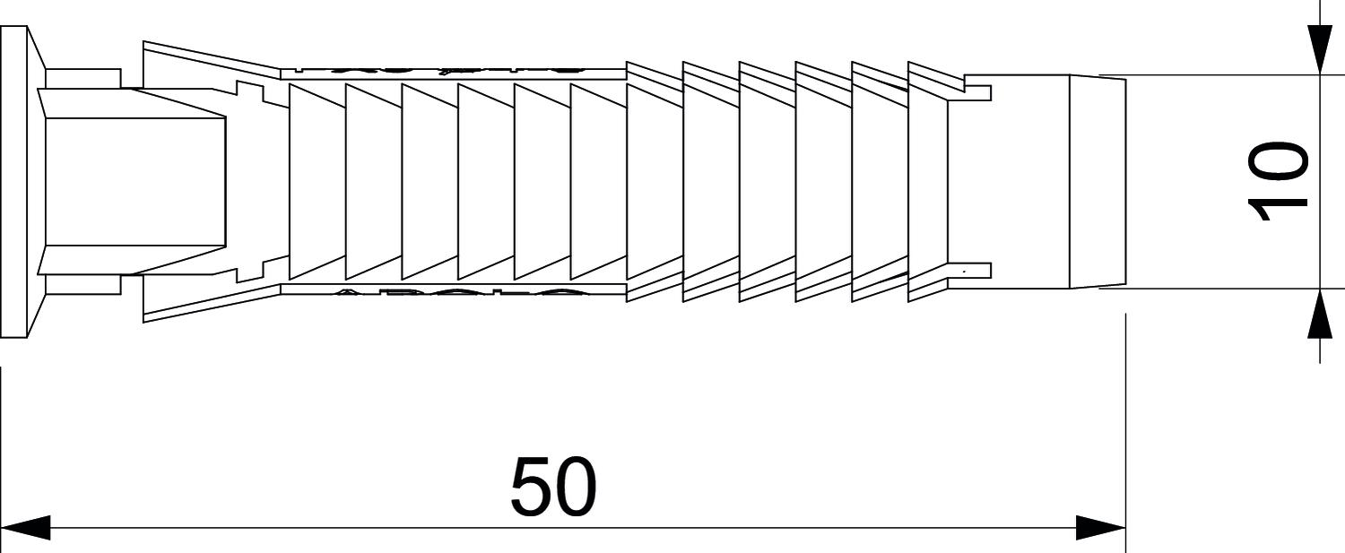 Apropiado para la fijación con brida para cables no Apropiado para tirafondo hexagonal sí Color Gris claro Con tornillos no Diámetro 10 mm Diámetro del orificio mín. 10 mm Dimensión 10x50 Longitud 50 mm Material Polietileno Medida D 10 mm Medida L 50 mm Tirafondos para madera 6-8 Valores de extracción 1280 N Versión Taco universal - Todos los tipos