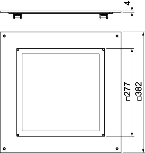 Abertura de montaje Cuadrado Adecuado para canalización bajo pavimento sí Adecuado para canalización cerrada a ras de pavimento no Ancho 383 mm Ancho de canal máx. 350 mm Ancho de canal mín. 190 mm Cuidados del suelo seco Dimensión 383x383x26 Grosor del material 4 mm Longitud 383 mm Material Acero Medida A 383 mm Medida a 278 mm Modelo para carga pesada no Orificio para la instalación de caja sobre el pavimento no Posibilidad de instalar una junta no Superficie Galvanizado en banda Tamaño nominal 350 mm Tamaño nominal para unidades portamecanismos 9 Tapa abertura de montaje no - Todos los tipos