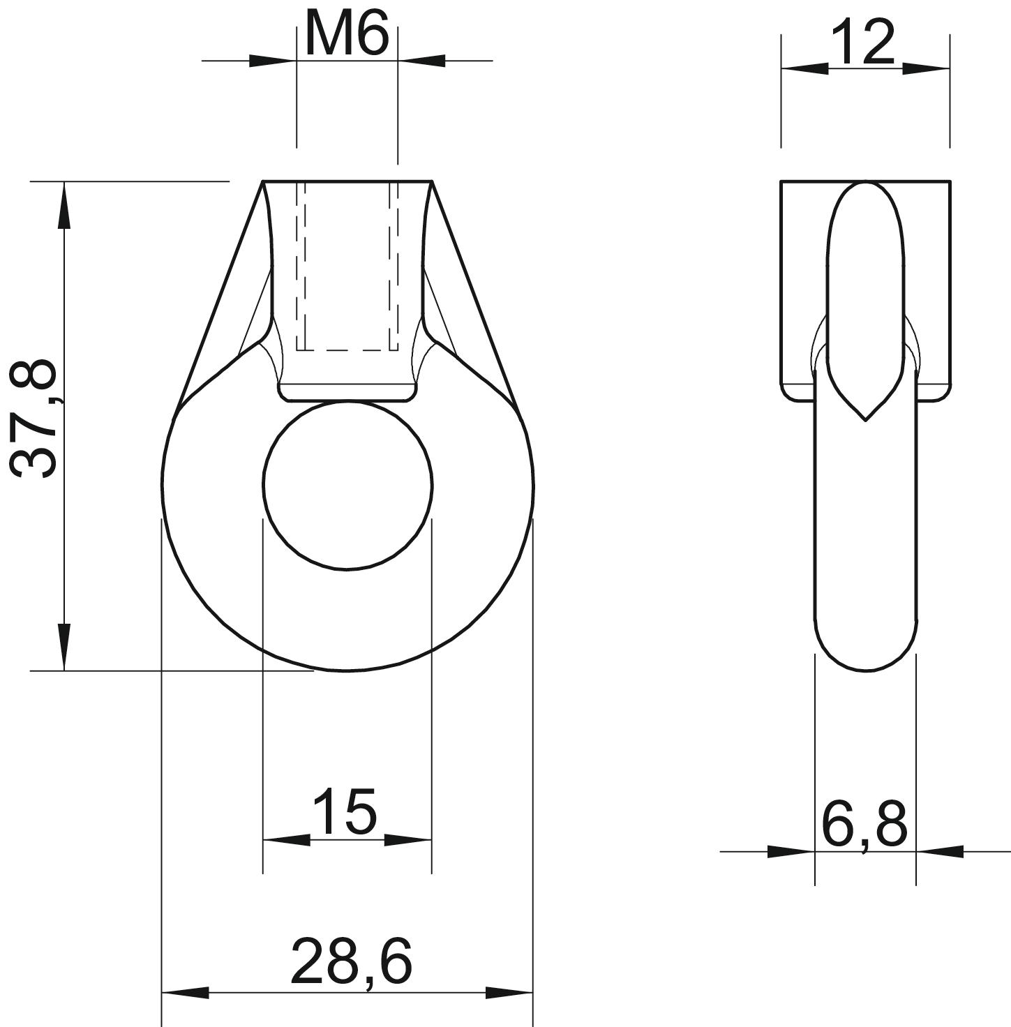 Descripción de productoTuerca cáncamo con rosca interna métrica.