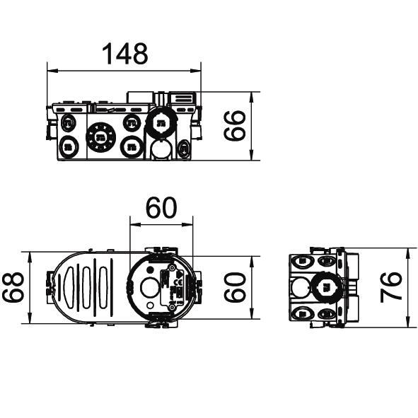 Descripción de productoCaja electrónica empotrable con espacio de apriete adicional, para el uso en muros con una profundidad de montaje de mínimo 66 mm.