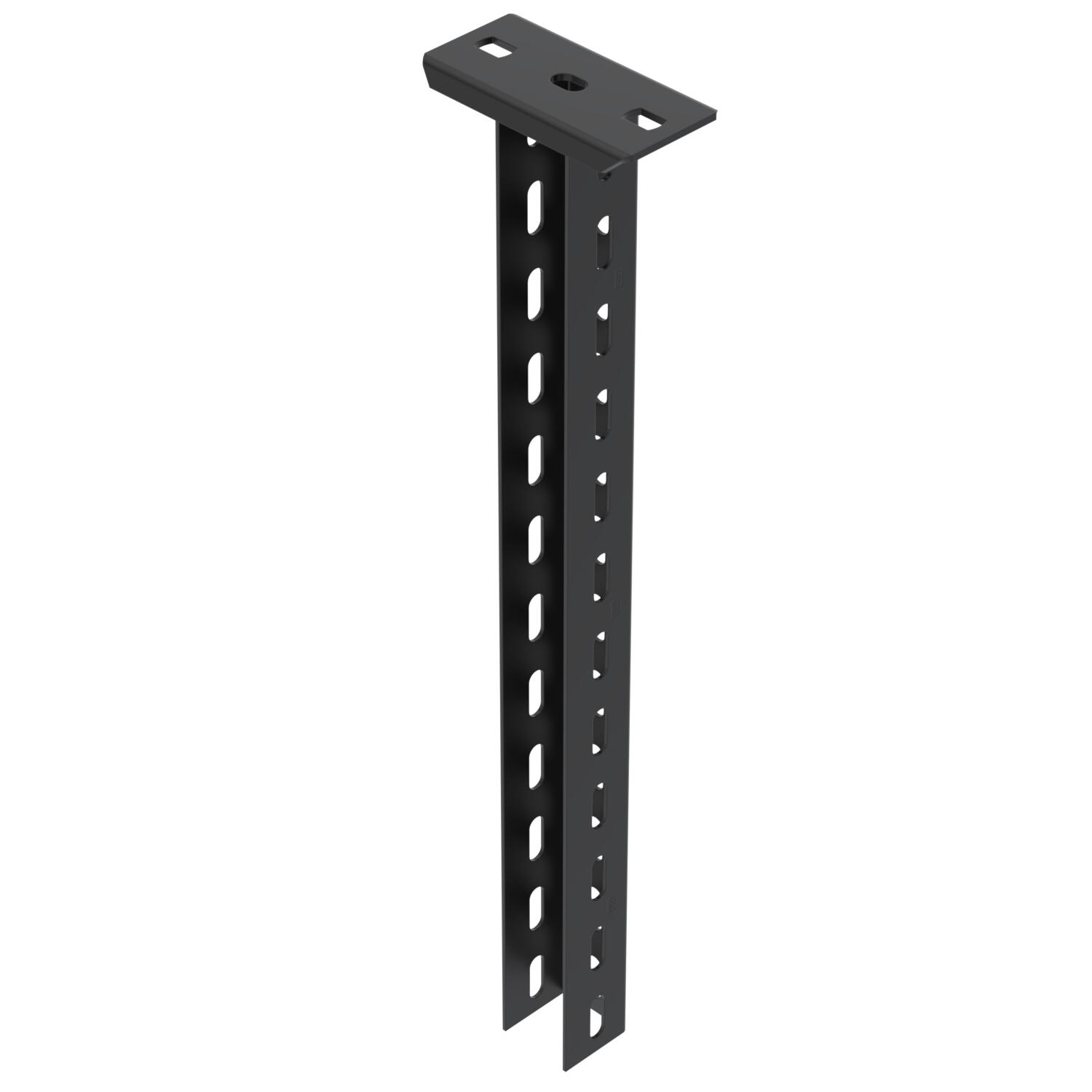 Descripción de productoSuspended support made from U profile with welded-on head plate, perforated to 3 sides, for the creation of support constructions for cable trays. Suitable for mounting on horizontal concrete ceilings and steel supports. Wall and support bracket can be mounted on both sides of the U suspended support. Spacer DSK to insert, from bracket width 400 mm or when mounting the bracket on the end of the suspended support. With black powder coating.